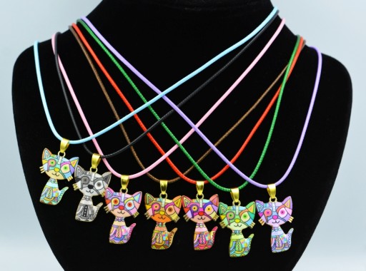 Wisiorek z zawieszką kolorowy KOTEK + sznurek woskowany