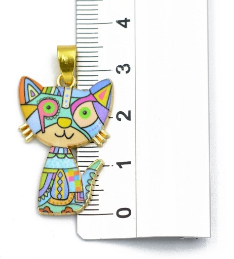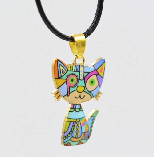 Wisiorek z zawieszką kolorowy KOTEK + czarny sznurek woskowany