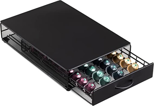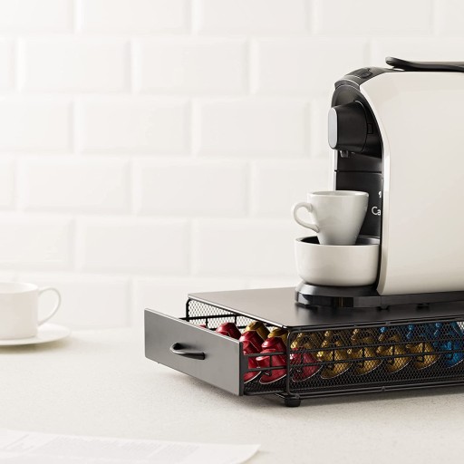 - Elegancki stojak na kapsułki może służyć jako podkładka pod maszynę, dzięki czemu nie zajmuje dużo miejsca. Pudełko na kapsułki pozwala zaoszczędzić miejsce