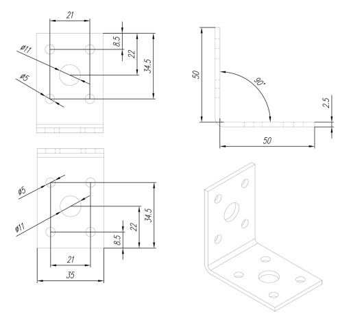 Kątowniki wykonane zostały z blachy stalowej ocynkowanej o grubości 2.5 mm.
