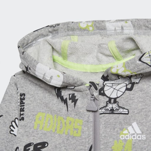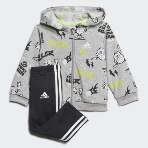 Od miłości do ruchu zaczyna się miłość do sportu. Pielęgnuj je obie dzięki temu dresowi adidas dla najmłodszych. Bluza z kapturem i pasujące spodnie są miękkie w dotyku, aby Twój maluszek cieszył się wygodą w ruchu.