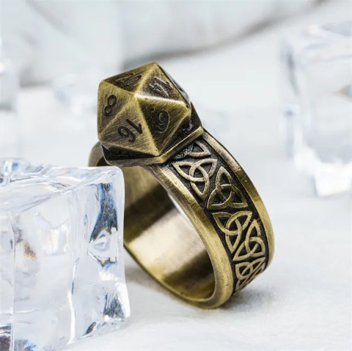Złoty Pierścionek Z Kością K20 RPG Mistrz Gry