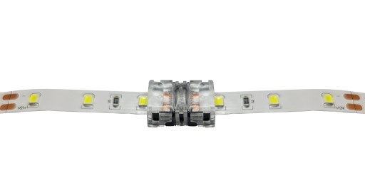 - Złączka obsługuję taśmy o szerokości podkładu nie przekraczającego 10mm IP20 (bez silikonu). Aby zastosować do taśm IP65, należy zdjąć silikon.