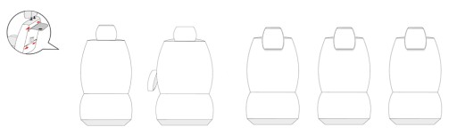 Prezentowane pokrowce są w 100% dopasowane do oryginalnej tapicerki. Powstały na podstawie foteli z konketnych modeli samochodów. Wszystkie otwory są gotowe i estetycznie obszyte, np. otwory na zagłówki, elementy konstrukcyjne, uchwyty, profile foteli. Zawierają wszystkie typowe dla danego modelu samochodu elementy, takie jak podłokietniki, standardowe lub nachodzące zagłówki, otwory na kieszenie i stoliki czy też kolumny (nadkola) jeśli takie występują. Nie zasłaniają również zaczepów na ISOFIX na foteliki dziecięce. Wszystkie informacje dotyczące danego modelu znajdziecie Państwo w specyfikacji poniżej.