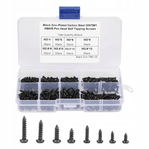 ZESTAW ŚRUB CZARNY WKRĘTÓW KRZYŻAK M2 M2.6 400 SZT
