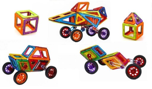 - Klocki magnetyczne zapewniają mnóstwo zabawy i rozwiązań konstrukcyjnych. Uczą najmłodszych twórczego myślenia, cierpliwości, figur geometrycznych .