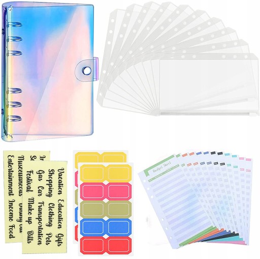 1. Zawartość opakowania: Zestaw segregatorów budżetowych zawiera 1 notatnik z 6 otworami, 10 kieszeni na segregatory, 2 etykiety katalogowe, 12 kolorowych arkuszy budżetowych i 20 naklejek. Ilość wystarcza na Twoje codzienne potrzeby.