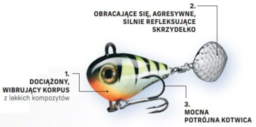 Stosunkowo wolny opad, dobrze wyczuwalna praca i zastosowanie potrójnej kotwiczki to jej cechy przewodnie, które w szczególności spodobają się łowcom okoni, szczupaków i pstrągów. Subtelny, unikatowy design i sprawdzona kolorystyka przypadną do gustu nawet najbardziej wymagającym wędkarzom, dla których najważniejsza jest skuteczność, trwałość i niezawodność w każdych warunkach.