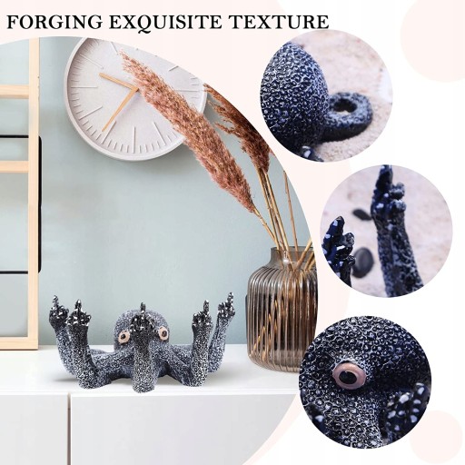 【Pomnik ośmiornicy z środkowym palcem】: Ośmiornica ze środkowymi palcami i ozdobiona farbą o dobrej teksturze - tak zabawna i urocza, że przyciąga wzrok każdego w dowolnej przestrzeni! Ozdobna rzeźba wściekłej ośmiornicy dodaje marynistycznej atmosfery do domów i przestrzeni. Niezbędny element dekoracji domu.