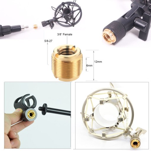 Jest to standardowy adapter 3/8 cala z gwintem żeńskim do 5/8 cala gwint męski. Większość uchwytów mikrofonowych, koszyków antywibracyjnych itd., posiada standardowe złącze 5/8 cala, ale niewielka ich część ma 3/8-calowe złącze. Jeśli znajdziesz się w sytuacji, że twój gwint jest niewłaściwy skorzystaj z tego adaptera gwintowanego, aby rozwiązać problemy kompatybilności.