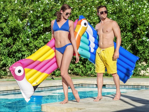 Dmuchany materac Tropical Bird firmy Bestway® to najnowsza propozycja, która świetnie sprawdzi się podczas orzeźwiających kąpieli w wodzie, w upalne letnie dni.