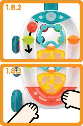 Zabawka, która przez swoje funkcje zachęca dzieci, aby nauczyły się wstawać i chodzić w tym samym czasie gwarantując dobrą zabawę i radość na twarzy pociechy oraz rodzica.