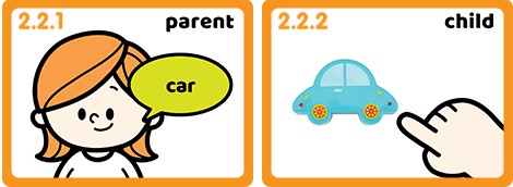 Metoda: Naucz dzieci nazw przedmiotów i kolorów oraz zachęć do pokazania ich na zabawce.