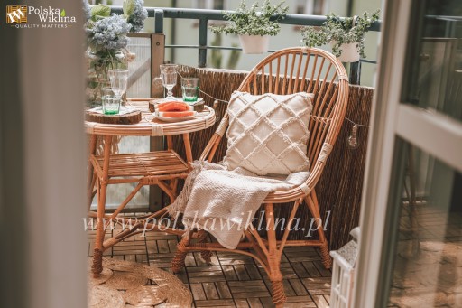 - Wykonanie: Meble wiklinowe są ręcznie wykonany z wikliny pochodzącej z polskich upraw. Do ich produkcji użyto grube wiklinowe kije, dlatego są trwałe i solidnie wykonane. Blat stołu wykonany jest z kijów wiklinowych. Pamiętaj, że użytkując swoje meble wiklinowe należy zadbać, o odpowiednie podłoże. Do produkcji naszych wyrobów wykorzystujemy zszywki, gwoździe, wkręty i inne metalowe elementy, dzięki którym nasze produkty nie tylko cieszą oko ale są solidnie wykonane i scalone. Zaleca się umieszczanie mebli na płytkach, dywanie lub podbicie filcem płozów i nóg. Meble nie są impregnowane.