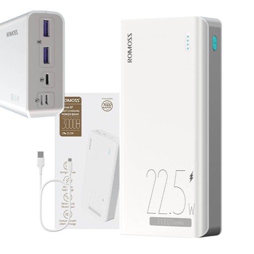 ROMOSS POWERBANK USB ДЛЯ ТЕЛЕФОНА 30000 мАч 2X USB-A USB-C QC PD КАБЕЛЬ 22,5 Вт