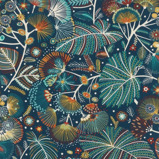 ОБОИ РАЗНОЦВЕТНЫЕ ЛИСТЬЯ ЦВЕТЫ БИРЮЗОВЫЕ НАЦИОНАЛЬНЫЕ