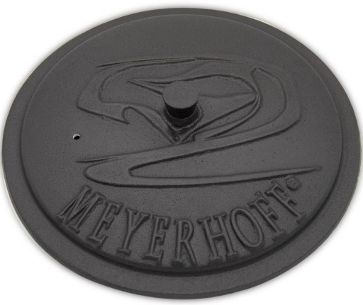 Oryginalna pokrywa Meyerhoff wykonana z najwyższej jakości stopu żeliwa odpornego na najwyższe temperatury. Posiada specjalny odpowietrznik, który reguluje ciśnienie wewnątrz kociołka, przez co jest on w 100% bezpieczny. Od wewnętrznej strony pokryta żaroodporną emalią, która chroni i zabezpiecza pokrywę, dodatkowo ułatwiając jej mycie i konserwację (nie ma potrzeby impregnowania po każdym użyciu).