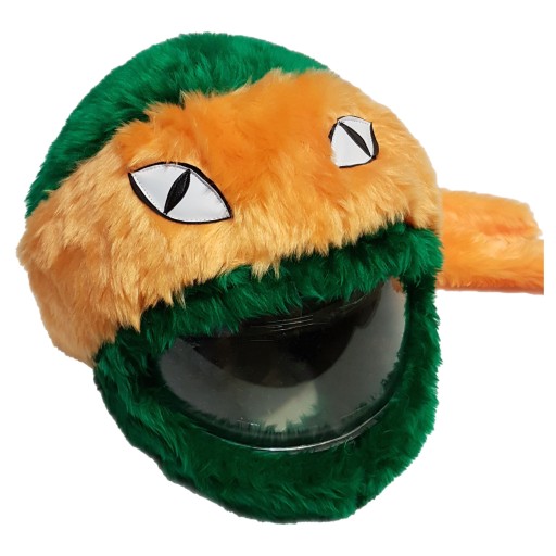 Przedmiotem tej aukcji jest: 1szt. Pluszowy Pokrowiec na Kask Motocyklowy Żółw Zielono - Pomarańczowy