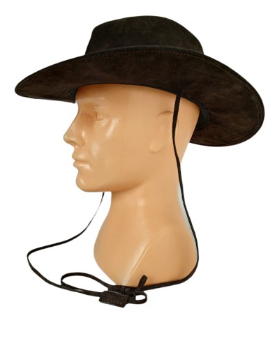 Wygodny ściągacz zamontowany wraz z rzemieniami dzięki którym nie zgubimy Kapelusza np. podczas jazdy konnej .