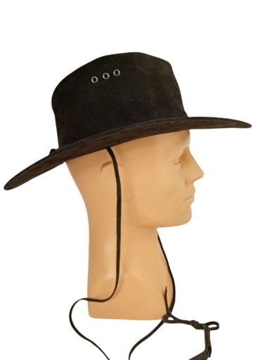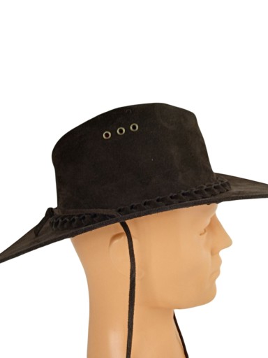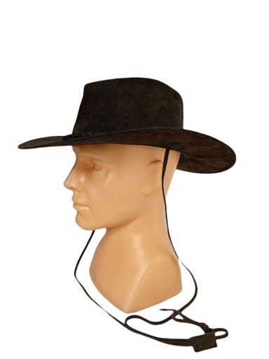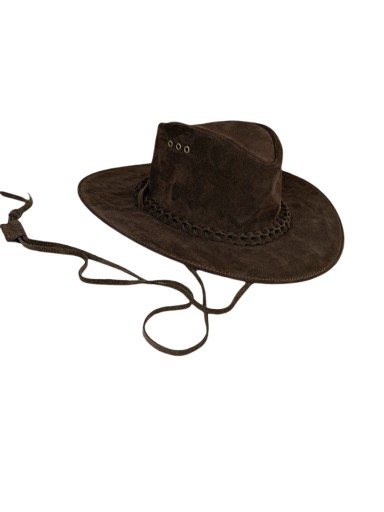 КОРИЧНЕВАЯ КОЖАНАЯ ШЛЯПА НА РЕМЕНКАХ - РАЗМЕР L