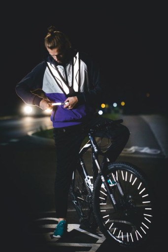 - Doskonale odbijają światło, dzięki czemu znacznie zwiększają bezpieczeństwo rowerzysty po zachodzie słońca.