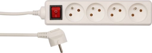 Klasyczny przedłużacz listwowy z 4 gniazdami z uziemieniem oraz włącznikiem do użytku domowego. Długość 3m. Obudowa gniazd z tworzywa sztucznego. Kolor biały.