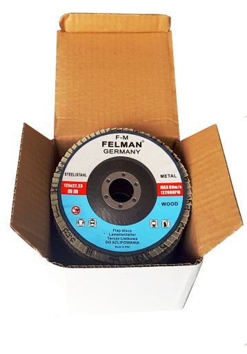 Ściernice lamelkowe marki FELMAN® Germany do szlifierek ręcznych cechuje wysoka jakość wykonania listków z materiału ściernego oraz trwałość. Tarcze Felman typu listkowego bardzo dobrze sprawdzą się w pracy z takimi materiałami jak metale, drewno czy stal. Dostępność tarcz w kilku stopniach granulacji (36 - gruboziarnista, 40 – gruboziarnista, 60 – średnioziarnista, 80 – drobnoziarnista, 100 - drobnoziarnista, 120 - drobnoziarnista) umożliwia zastosowanie ich na każdym etapie obróbki.