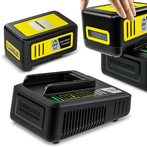 Ładowarka z akumulatorem KARCHER 2.445-063.0 pasuje do wszystkich urządzeń akumulatorowych z platformy bateryjnej 18 V Kärcher. Dzięki niej już w około 94 minuty naładujesz akumulator do 80%, a do pełna w około 143 minuty. Wygodny wyświetlacz LCD pokazuje pozostały czas pracy, czas do pełnego naładowania oraz aktualny poziom naładowania, więc potrzebne informacje masz zawsze w zasięgu wzroku