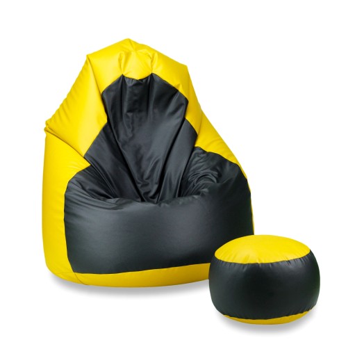 Oferowany produkt to ogromny, dwukolorowy fotel sako o pojemności 500L z podnóżkiem. Jego wymiary to 130cm wysokości oraz 100cm średnicy podstawy. Wymiary podnóżka to 40cm średnicy oraz 25cm wysokości. Fotel jest standardowo wypełniony granulatem polistyrenowym EPS - aktywnymi kulkami styropianowymi, które łatwo dopasowują się do kształtu sylwetki. Sako jest meblem bezszkieletowym, przez producenta zalecane jest zarówno dla dzieci jak i dorosłych. Materiały z których została wykonana - ekoskóra oraz granulat EPS - posiadają atest PZH. Sako dostępne w dwudziestu wersjach kolorystycznych, do wyboru przy zakupie.