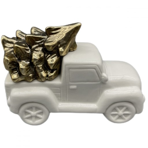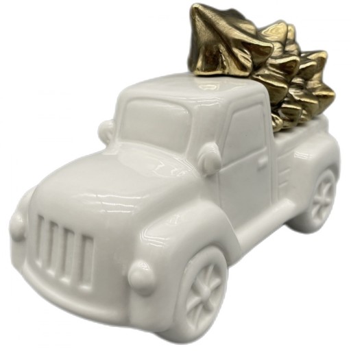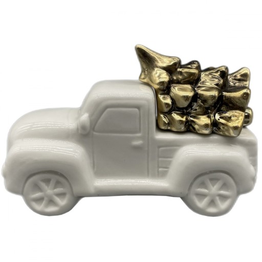 Uroczy i pełen przytulnego klimatu figurka autko PICK UP z choinką o jasnych barwach to element naszej wyjątkowej serii ozdób świątecznych marki SASKA GARDEN.