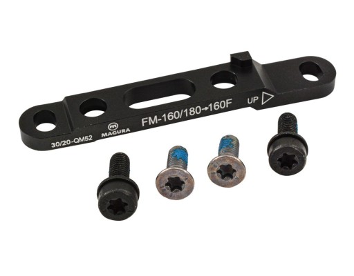 Adapter QM 52 firmy Magura pozwala na zastosowanie tarcz hamulcowych 160mm / 180mm. Adapter jest przykręcony do płaskiego gniazda widelca i przesuwa płaski zacisk hamulca do wymaganego rozmiaru.