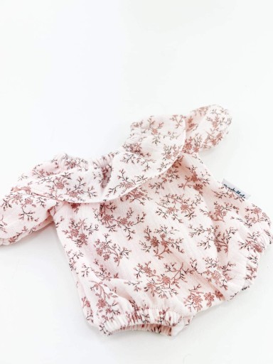 Piękny kombinezon uszyty z mięciutkiej bawełnianej gazy, z falbanką pod szyją.