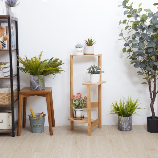 Ten 3-poziomowy stojak w prostym nordyckim stylu, wyglądający i trwały. Wykonany jest z litego i ekologicznego bambusa, bez zachowania, zaokrąglonych krawędzi, ozdobnych miejsc. Nadaje się każdemu rogu w salonie, domu, ogrodzie, balkonie, podwórku itp.