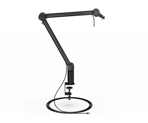 Studio Boom Arm to profesjonalne ramię. Z jego pomocą pozbędziesz się z biurka dyndającego kabla od mikrofonu i utrzymasz porządek pod rękami (albo po prostu zrobisz więcej miejsca na ważniejsze rzeczy).