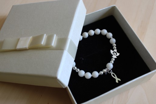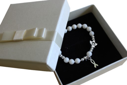 Bransoletka zapakowana jest w kremowe pudełko z kokardką