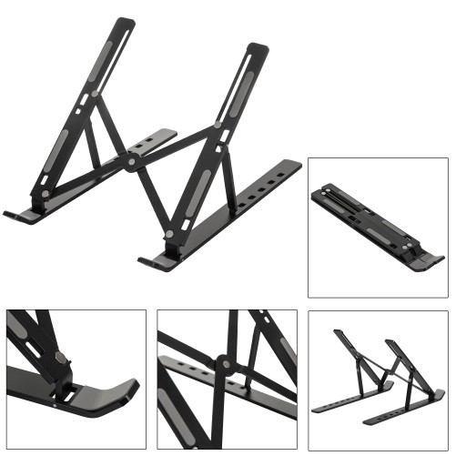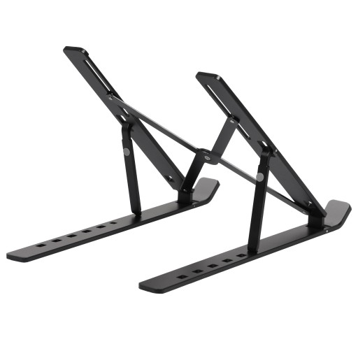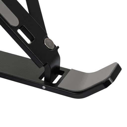 Produkt posiada lekką, ale stabilną aluminiową konstrukcję z możliwością regulacji oraz złożenia. Pozwala na ułożenie urządzenia pod odpowiednim kątem, co skutkuje lepszą ergonomią pracy oraz utrzymaniem zdrowej pozycji podczas pracy.