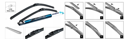 Wycieraczki o konstrukcji bezszkieletowej ze zintegrowanym spojlerem, wycieraczki na przednią szybę wykonane z mieszanki silikonowo-kauczukowej. Multi Type oznacza, iż wycieraczka posiada wymienne mocowania 11 typów: U, A, B, B1, C, C1, C3, D, E, E1, F, - dopasowanie wg. katalogu. Posiadają symetryczny obustronny spoiler dzięki czemu pasują także do aut z kierownicą po prawej stronie a także do aut z przeciwbieżnym systemem wycierania.