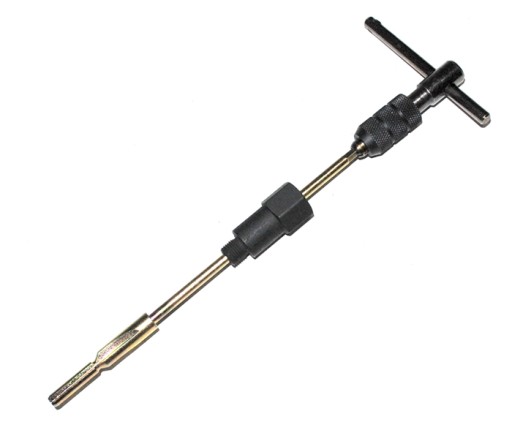 Poprawa gwintu gniazda świecy: gwintownikami poprawiamy gwint gniazda świecy, pokrętło służy do pokręcania gwintowników.