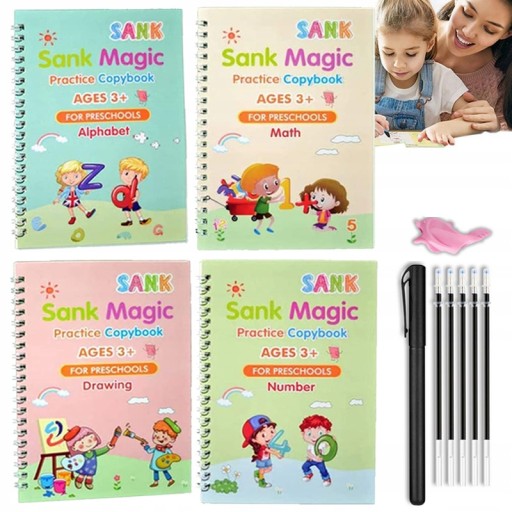 - 4 magiczne książeczki Sank Magic - nauka liter, cyfr, liczenia oraz rysowania