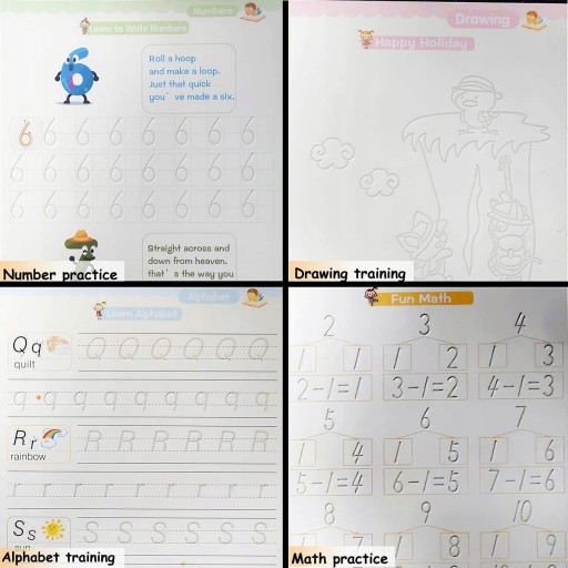 W skład zestawu wchodzą 4 różne książeczki, które łącznie stanowią bogate źródło wiedzy oraz ćwiczeń dla dziecka. Książeczki te zawierają różnorodne zadania, jak np. naukę pisania liter, cyfr, ćwiczenia matematyczne takie jak dodawanie i odejmowanie, a także ćwiczenia rysunkowe, które pozwolą dziecku rozwijać swoją kreatywność.