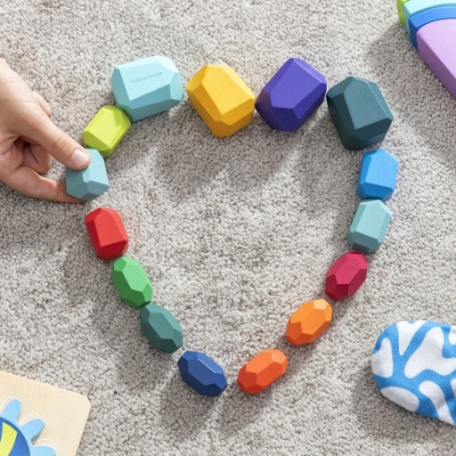 Prezentowany zestaw kamieni do układania w stos ułatwia dzieciom naukę liczenia oraz rozróżniania kolorów i kształtów. Pomaga również rozwijać ich zmysł równowagi i logiczne myślenie. Pozwala w zabawny sposób zainteresować dzieci samodzielnym analizowaniem i odkrywaniem, jak układać elementy, aby tworzyć własne dzieła.