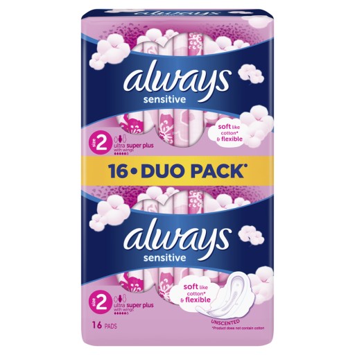 Always Ultra Sensitive Super Plus (rozmiar 2) Podpaski ze skrzydełkami, 16