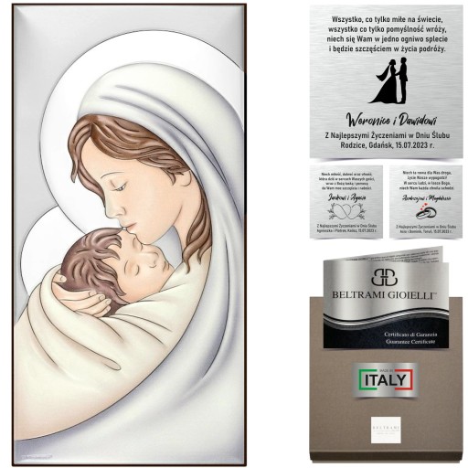 OBRAZEK SREBRNY MATKA BOŻA ŚLUB CHRZEST GRAWER
