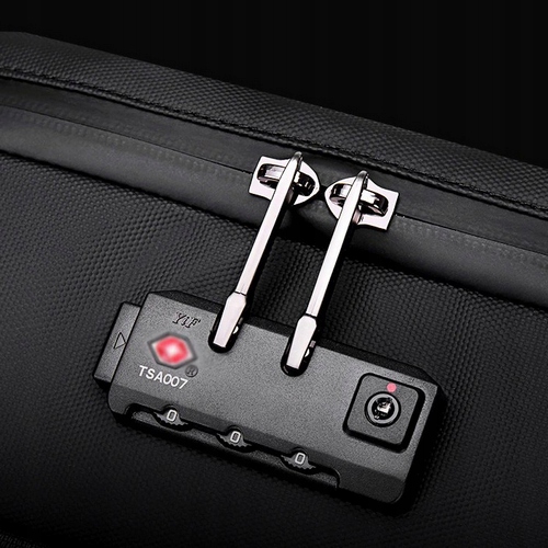 Plecak wyposażony jest w system antykradzieżowy. Głowna komora, w której przenoszony będzie laptop, może zostać zabezpieczona przed otwarciem, za pomocą kłódki wyposażonej w trzycyfrowy cyfr.