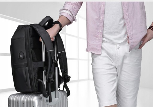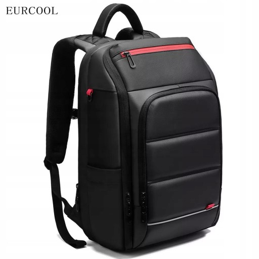 Dwukomorowy plecak na laptopa marki Eurcool od Nigeer o symbolu EC-0003 wykonany jest z wytrzymałych i wodoodpornych materiałów. W komorze na sprzęt, z tyłu plecaka, znajduje się miękka kieszeń na laptop w rozmiarze do 15,6" i mniejsza kieszeń na tablet - obie zabezpieczone elastyczną taśmą zapinaną na rzep, oraz duża kieszeń np. na foldery/dokumenty. Środkowa komora przeznaczona jest na zapakowanie ubrań, wewnątrz umieszczono również kilka większych kieszeni, aby łatwiej było uporządkować rzeczy. Natomiast z przodu plecaka umieszczono mniejszą kieszeń z wieloma kieszonkami na zapakowanie akcesorióworaz z przypinką na klucze. Ponad nią, oznaczona czerwonym zamkiem, znajduje się dedykowana kieszeń na okulary. Po bokach plecaka umieszczono kieszenie na napój lub parasolkę. Na obu szelkach znajdują się malutkie kieszonki na zamek, natomiast z boku plecaka umieszczono specjalny zaczep na okulary. W górnej części szelek znajduje się uchwyt służący do przenoszenia plecaka w ręce. Natomiast pośrodku umieszczono dodatkowy pas piersiowy, aby lepiej rozłożyć ciężar plecaka przy dużym obciążeniu. Na tylnej ścianie plecaka znajduje się bezpieczna kieszonka na portfel lub telefon oraz szeroki pas, dzięki któremu można założyć plecak na rączkę torby lotniczej. Plecak posiada zewnętrzne złącze USB, dzięki czemu nie ma konieczności wyciągania power banka z plecaka, aby naładować telefon lub inne przenośne urządzenie.
