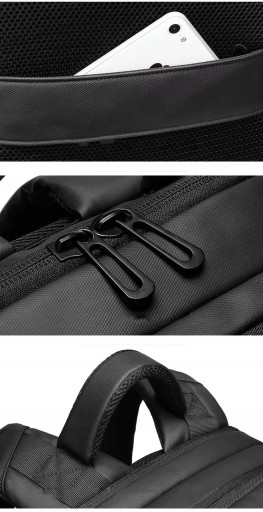 Plecak wyposażony jest w gniazdo USB, dzięki czemu nie ma konieczności wyciągania power banka z plecaka, aby naładować telefon. Uwaga, power bank nie jest częścią zestawu.