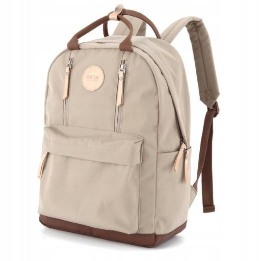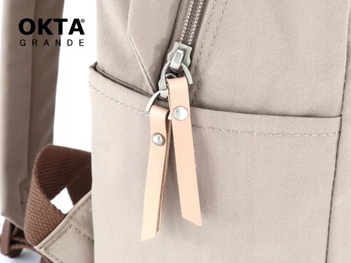 Plecak Okta model ASAMI 1087 został wykonany z trwałego i odpornego na deszcz materiału. W głównej, pojemnej komorze znajduje się osobna miękka komora na laptop w rozmiarze 13,3" - 14,1" oddzielająca przenoszony sprzęt od reszty rzeczy, dwie dodatkowe kieszenie np. na telefon lub inne akcesoria oraz siatkowa kieszeń zapinana na zamek. Z przodu plecaka znajduje się spora kieszeń na podręczne rzeczy, powyżej której znajduje się mniejsza kieszonka z dwoma suwakami. Po bokach plecaka umieszczono kieszenie na napój lub parasolkę. Plecak posiada dwie rączki, które można ze sobą spiąć i przenosić plecak w ręce jak torbę np. podczas przejazdu w zatłoczonej komunikacji miejskiej. Dół plecaka wykonano z kontrastowego w kolorze materiału, który dzięki poddaniu impregnacji dodatkowo chroni plecak przed zamoczeniem czy zabrudzeniem go w wyniku np. odkładania na ziemię. Model ten wyróżnia się ciekawą kolorystyką - doskonale sprawdzi się w szkole, jak i w czasie weekendowych wycieczek.