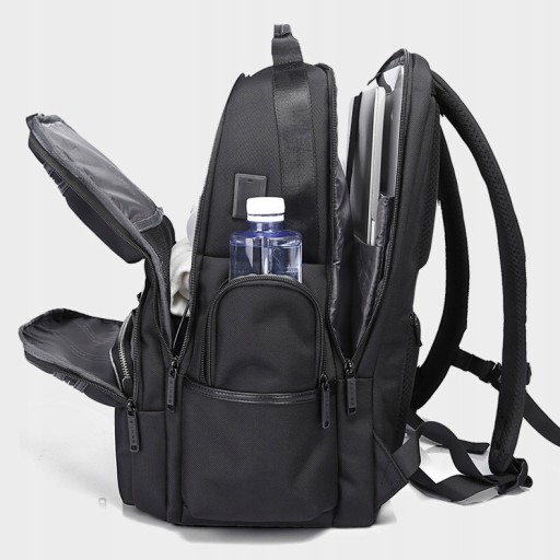 Bardzo pojemny i świetnie zorganizowany, trzykomorowy plecak marki Bange o symbolu BG-2601, pomieści laptopa w rozmiarze do 17,3 oraz ubrania na krótki wyjazd. Wykonany został z wytrzymałego i impregnowanego nylonu, który ochroni zawartość plecaka przed warunkami atmosferycznymi. W pierwszej komorze z tyłu umieszczono kieszeń na laptopa w rozmiarze do 17,3 oraz kieszeń na tablet, obie zapinane na elastyczny pasek z rzepem. W drugiej komorze, z przodu plecaka, wyznaczono miejsce na zapakowanie ubrań, które można spiąć elastycznymi paskami, aby się nie przesuwały. Znajdują się tutaj również trzy kieszonki na drobne rzeczy, zapinane na wodoodporne zamki. Z przodu plecaka umieszczone są trzy kieszenie na podręczne rzeczy, jedna z nich zawiera organizer na akcesoria i długopisy. Po bokach plecaka znajdują się mniejsze ( zapinane na zamek) kieszenie na napój, parasolkę lub podręczne rzeczy. Z lewej strony plecaka umieszczono zewnętrzne złącze USB, dzięki czemu nie ma konieczności wyciągania power banka z plecaka, aby naładować telefon lub inne przenośne urządzenie. Złącze jest zamykane na klapkę, dzięki czemu jest chronione przed zamoknięciem. U góry plecaka znajduje się solidny uchwyt do wygodnego przenoszenia go w ręce nawet przy dużym obciążeniu. Szelki plecaka są wyprofilowane i solidnie uszyte, oraz spinane dodatkowym paskiem, aby lepiej rozłożyć ciężar przy maksymalnym zapakowaniu plecaka. Tył plecaka i szelki są wyłożone miękkimi gąbkami, dzięki czemu jest on wygodny w noszeniu. Na tylnej ścianie plecaka znajduje się również bezpieczna kieszeń na portfel lub telefon oraz nylonowy pas, dzięki któremu można założyć plecak na rączkę torby lotniczej. Bange BG-2601 to bardzo pojemny plecak, który z pewnością doskonale sprawdzi się w pracy, jak i w kilkudniowej podróży.