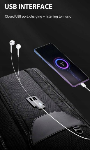 Plecak wyposażony jest w gniazdo usb, dzięki czemu nie ma konieczności wyciągania power banka z plecaka, aby naładować telefon. Uwaga, power bank nie jest częścią zestawu.