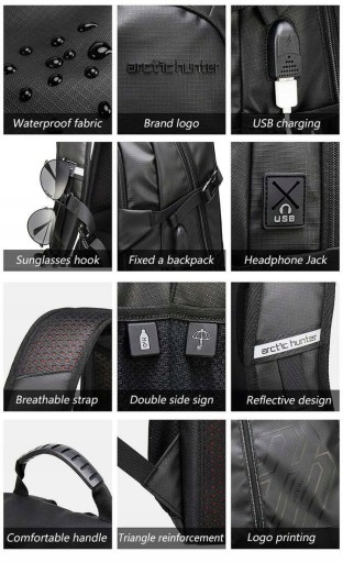 Galeria produktu Arctic Hunter Plecak Arctic Hunter na laptopa 15,6" B00387 z USB
